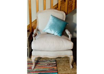 Кресло выполнено из массива манго, обивка натуральный лён. Наполнитель ППУ+гусиное перо