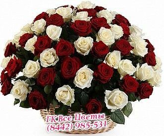 - Корзина роз белая и красная роза 101 роза в каталоге Композиции и корзины цветов в Волгограде;