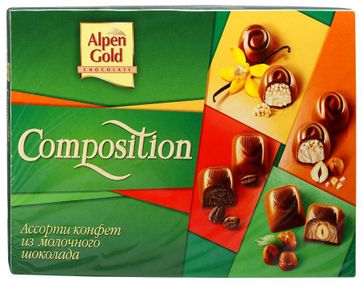 - Alpen Gold Composition ассорти конфет из молочного шоколада 204 грамма по выгодной цене 600 р. руб.;