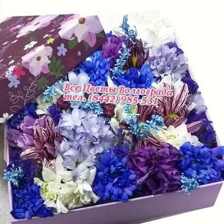 Закажите Подарочная коробочка Синие цветы Надежды у компании Лавка подарочных корзин в Волгограде в Волгограде на портале Alloy:
