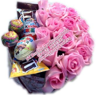 Закажите Розы в шляпной коробке с Киндер, Чупа-Чупс и ММдэнс у компании Лавка подарочных корзин в Волгограде в Волгограде на портале Alloy: