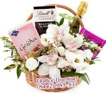 - Нежная корзина подарочная цветы и шоколад в каталоге Корзины в Волгограде;