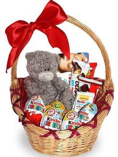 - Киндер Шоколад в корзинке или в подарочной коробке с плюшевым мишкой Малыш по выгодной цене 3 000 р. руб.;