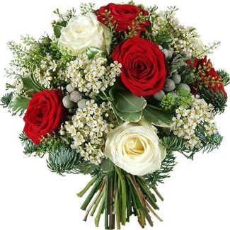 Закажите Букет Привет белые с красными розами с зеленью у компании Лавка подарочных корзин в Волгограде в Волгоградена портале Alloy: