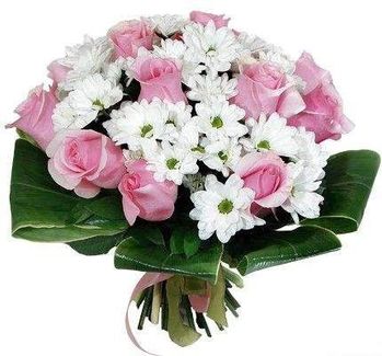 - Букет Солнца из роз с хризантемой по выгодной цене 2 800 р. руб.;