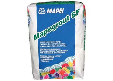 Mapegrout SF — готовый к применению материал в виде сухой смеси, созданный на основе высокопрочного цемента, фракционированного песка и специальной добавки, содержит полимерную и жесткую стальную фибры. При смешивании с водой образует не расслаивающуюся бетонную смесь с высокой текучестью, что позволяет её применять методом заливки в опалубку.