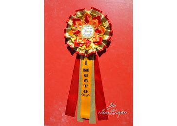 Яркая розетка для награждения победителей. Стандартно идет красно-золотой, изменение цветов по желанию покупателя.