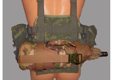 Подсумок для баллона от ВВД системы. Предназначен для размещения баллона ВВД на 0,8 л. Кроме того имеется возможность крепления подсумка в горизонтальном положении с помощью двух строп, которые такжевыполняют роль дополнительной фиксации баллона в подсумке. В верхней части посдумка имеется стягивающийся тубус, который обеспечивает фиксацию верхней части баллона, а также закрывает и защищает редукторы от повреждений и влаги. На донной части подсумка имеется отверстие для стока воды. Подсумок крепится на любую систему Модульного Облегчённого Разгрузочного Снаряжения по системе PALS при помощи "Natick Snap" MOLLE креплений (вертикальное крепление подсумка).