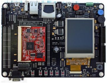 трехосевой датчик ускорения 4 кнопки 8 диодов LED USB OTG USB host/device Еthernet 10/100Base-T гнездо для карт MMC/SD джойстик 5 позиций цветной дисплей QVGA TFT 3,2 дюйма с сенсорной панелью конвертор USB - UART память EEPROM I2C 256кбит память NAND Flash 128MБ память NOR Flash 4MБ память SDRAM 32MБ, 32бит кварцевый резонатор 12МГц для установки тактовой частоты микроконтроллера кварцевый резонатор 32,768кГц для установки тактовой частоты RTC аналоговый вход