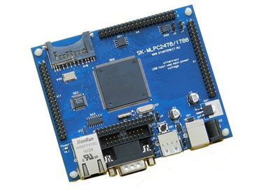 • Основа - NXP LPC1788 (ARM Cortex-M3 120MHz, 512k Flash, 98k SRAM, 4k EEPROM, EMC, SD-card, Ethernet RMII, USB-host, USB-client, LCD controller ...)• 32 MБайт SDRAM• 4 MБайт SPI DataFlash• Ethernet 100/10M, SD/MMC, CAN PHY, RS232• uSD держатель• Держатель батареи 1220• 137 линий I/OОснова платы - микроконтроллер фирмы NXP LPC1788, это новое семейство ARM Cortex M3 микроконтроллеров этой фирмы с широчайшим набором внутренней периферии: Ethernet, USB host/client/OTG, контроллер внешней памяти EMC (в том числе и SDRAM), LCD контроллер, CAN, RS232, SPI, I2C ... Архитектурные особенности:• Контроллер внешней памяти поддерживает различные типы внешних запоминающих устройств (асинхронную SRAM, NOR Flash, SDRAM ...), с адресным пространством более 1 ГБайта.• Контроллер LCD дисплея, настраиваемый контроллер, позволяющий подключить практически любой тип матрицы.• Внутренние шины и их мосты построены таким образом чтобы транзакции быстродействующей периферии (Ethernet, USB, LCD) в наименьшей степени влияли на производительность всей системы.• Производительность выполнения кода из внутренней флэш-памяти соизмерима с производительностью выполнения кода из внутренней статической памяти (это возможность относится ко всем ARM7 микроконтроллерам NXP).• Поддержка SD-карт в "нормальном" режиме (не только SPI), что обеспечит наибольшую производительность транзакций.• Встроенная 4К EEPROM память Подключенная периферия• 32 Mбайт SDRAM• 4 Mбайт SPI DataFlash• Ethernet 10/100M PHY - KS8721 (или KSZ8001)• uSD держатель карты• USB host (USB-A)• USB client (USB-B)• CAN PHY&b