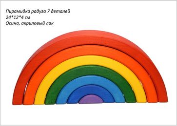 Пирамидка, балансир, конструктор. Использовать можно как угодно. Радуга под рукой в любое время. Самое главное, что это эко игрушка! Способствует развитию мелкой моторики рук, памяти, воображения и тактильных чувств. Использованы самые безопасные материалы, такие как осина и акриловые краски на водной основе. Покрытие устойчиво к воде.
