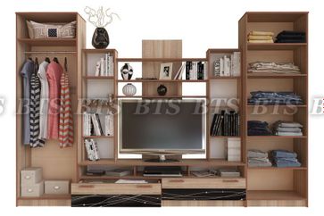 МАТЕРИАЛ: ЛДСП РАЗМЕР: 33002200500 НИША ТВ: 1100758500 НАПОЛНЕНИЕ: шкаф слева оснащён штангой с антресольной полкой, шкаф справа - полками ЦВЕТ: дуб сонома ДОСТАВКА. ПОДЪЁМ. СБОРКА. САМОВЫВОЗ. None Возможен самовывоз.