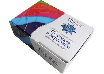 Краски полупрозрачные чистых ярких цветов, что позволяет использовать их для имитации витражей и нанесения рисунка на изделия из стекла ,керамики ,фарфора фаянса. Краски приготовлены на специальной акриловой основе, придающей краске высокую прочность и адгезию при применении на гладких поверхностях, а также способность выдерживать механические воздействия. Краски готовы к применению, при необходимости разбавляются водой или акриловым лаком. Набор красок по стеклу и керамике состоит из 6 цветов по 20 мл.