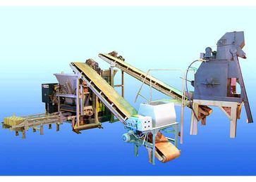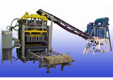 «Мастек» - стационарный вариант с РБУ на подставке и ленточным конвейером: вибропрессующий комплекс в комплекте с бетоносмесителем БП-1Г-450М, расположенным рядом с прессом на подставке и смесь подается посредством ленточного конвейера. Комплекс предназначен для производства стеновых камней, тротуарной плитки, бордюрных камней (по ГОСТ, длиной 1 м.) и многих других элементов методом объемного вибропрессования.